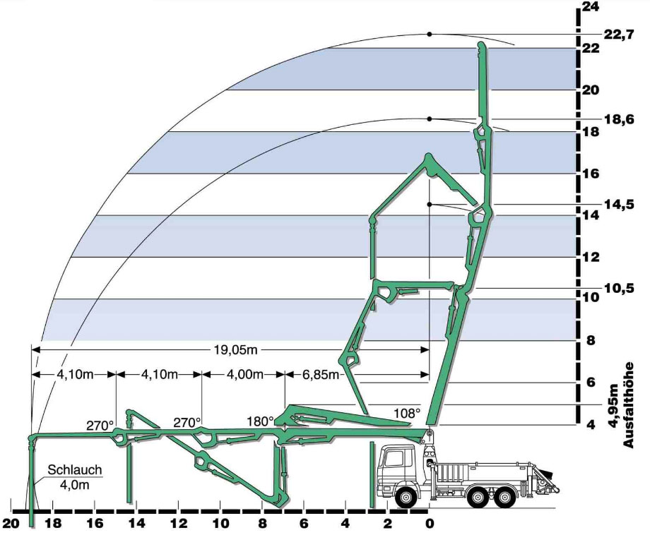 Een betonpomp m-24 is uitermate geschikt voor storts met beperkte ruimte. Door de bijzondere giekconstructie (een Z-giek) is de M-24 ook uitermate geschikt voor binnenstorts. Ze zijn wat kleiner dan onze andere betonpompen en hebben minder ruimte nodig om uit te vouwen. Zo kunnen ze laag bij de grond werken en zijn ze bijvoorbeeld ideaal voor het storten van binnenvloeren. Ook worden deze betonpomp bijvoorbeeld ingezet voor het verpompen van beton onder viaducten of electriciteitskabels.
