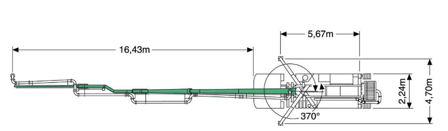 Reikwijdte (vanaf draaipunt)19,05m¹