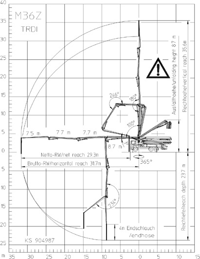 De M-36 betonpomp wordt over het algemeen gebruikt voor de grotere betonstorts. De pomp heeft een pompcapaciteit van 120 m3/uur en heeft een mastlengte van 36 meter.